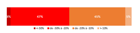 Répartition des départements selon l’évolution 2023 du produit des DMTO